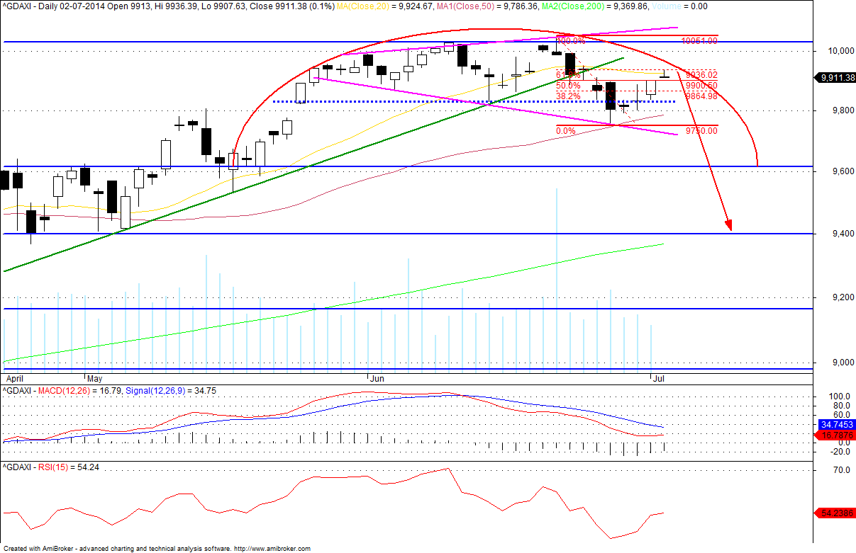 Assim como ontem despachei a posição curta nos 9840 porque estava a antecipar a subida, hoje entrei novamente curto porque acho que não subirá muito mais