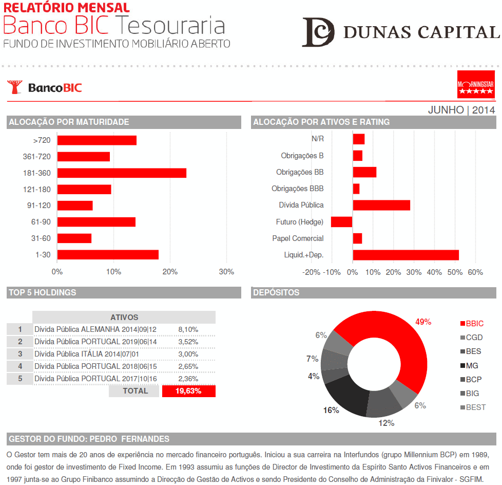 Fonte: Dunas Capital - Fact Sheet Mensal Dunas Banco BIC Tesouraria A FIMA (Junho 2014)