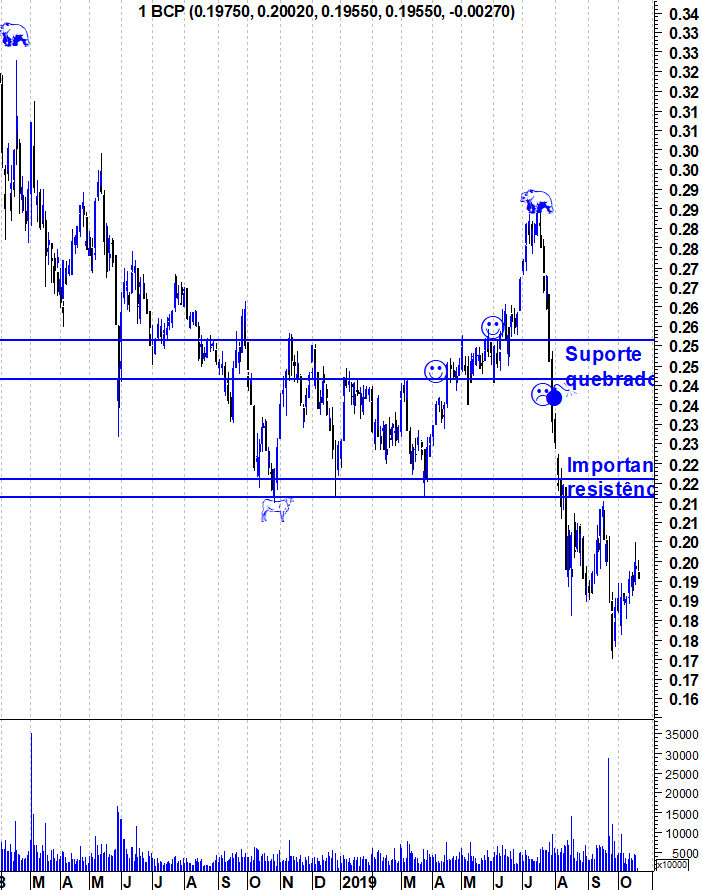 Quanto ao BCP, tudo mais ou menos na mesma, não cair é sempre bom para os contribuíntes portugueses... mas para investir nisto é preciso ter uma grande capacidade para assumir riscos altos... e já há muito que o potencial não compensa.
