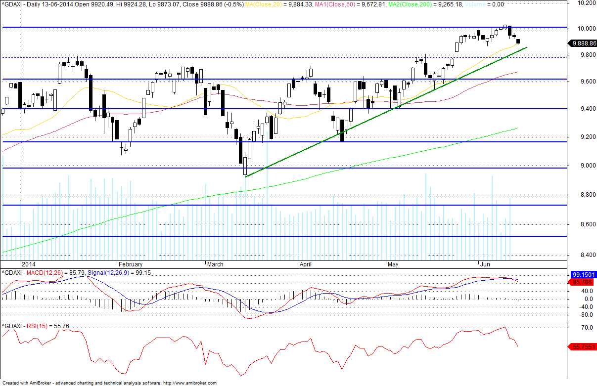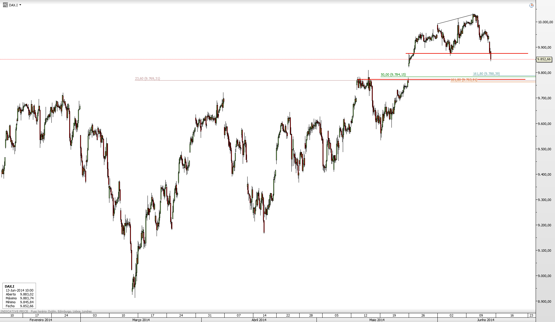 Continuo curto (desde os 9933). Acho que está a cimentar a descida. Neste momento os 9900 deixaram de ser suporte para ser resistência. Não me admirava nada que de um momento para o outro acontecesse um esbardalhamento. Como disse lá atrás estou sem pachorra para o intraday, também porque acho que não está para isso. É muito mais calmo assim, sem stress, com alguma folga para aguentar eventuais maluquices do nosso amigo DAX. Mas estou perfeitamente convicto (estou