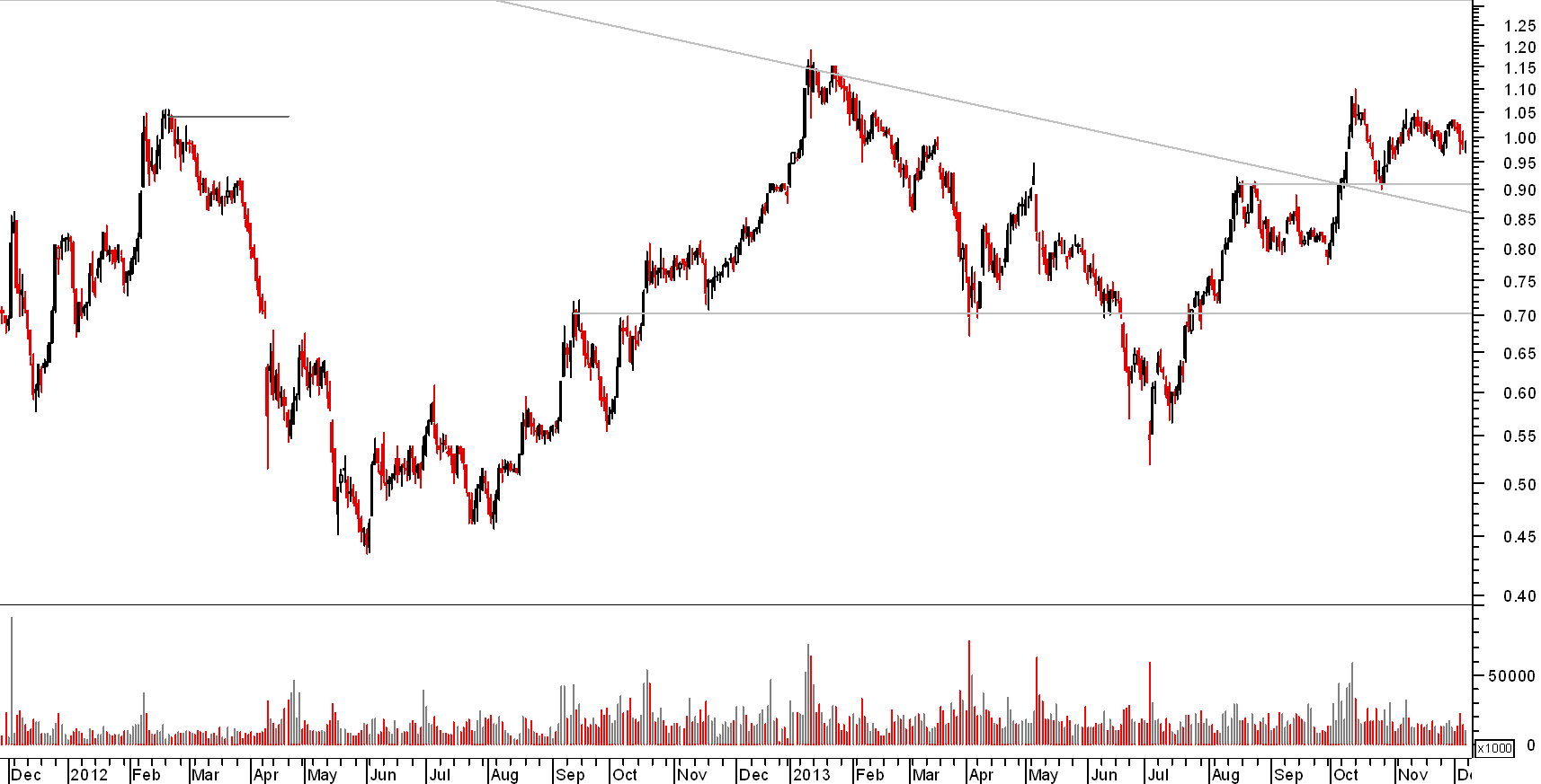 Como referiu o Ulisses, um suporte consistente é na zona de 0,91, mas entrei neste "mini" suporte (0,97), porque no curto prazo a tendência parece ser de subida, vamos ver se é mesmo assim.