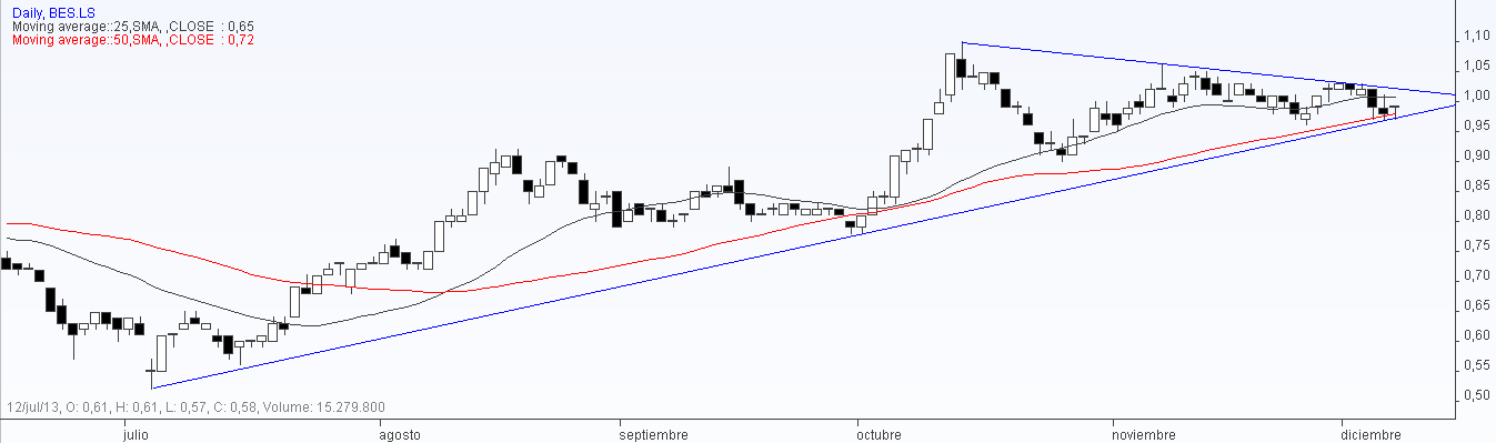 Pela minha análise do BES (algo impulsiva reconheço), penso que está num bom ponto de entrada, decidi ontem e hoje comprar (preço médio igual ao fecho de hoje). Com o fecho nos States, claramente positivo, a minha avaliação fica reforçada, não estranharia um fecho de ano positivo na nossa bolsa.