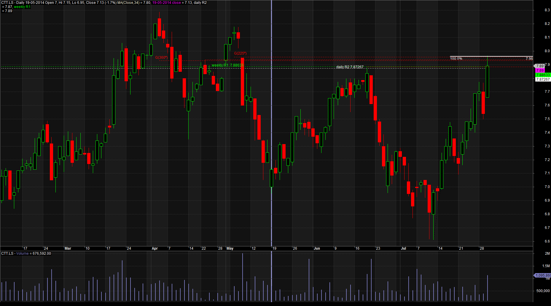 Pessoalmente esperava uma ida acima dos 7,84 para sair, mas ainda não foi hoje... Se descer abaixo do meu último preço, reforço.