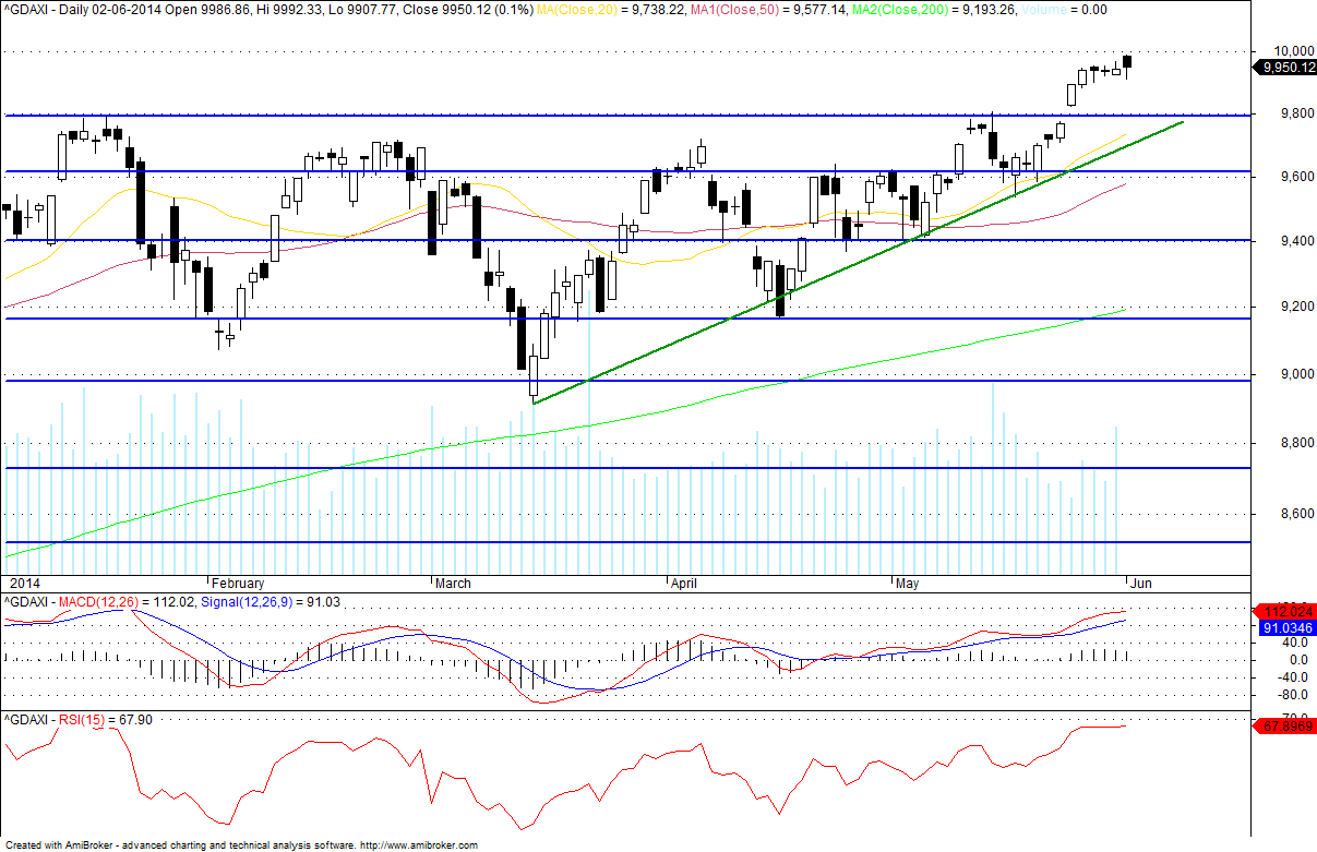 Quer o DAX quer o SPX estão em máximos, entrada longa nestes 2 só a seguir a uma correção ou teste à quebra em alta.