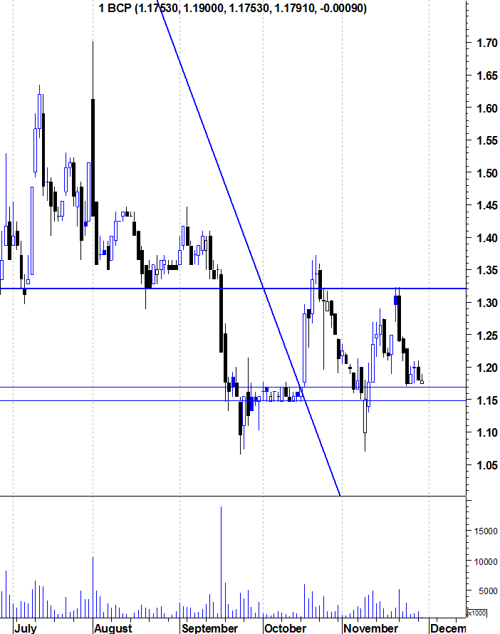 ... na verdade, o BCP, nas últimas sessões tem andado a um valor médio acima do 1,18 e o valor mais baixo foi por volta dos 1,175.