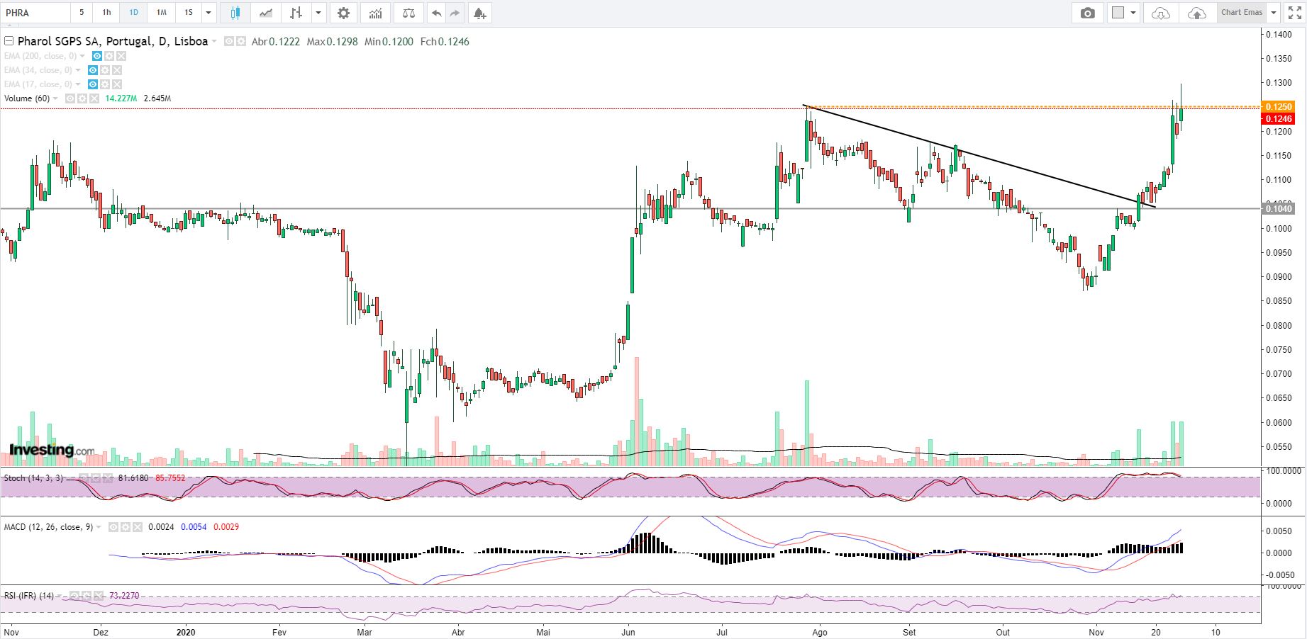 Era importante fechar acima dos 0.1250€ e mais proximo dos 0.13€) pois já tivemos 2 tentativas e sem sucesso.
