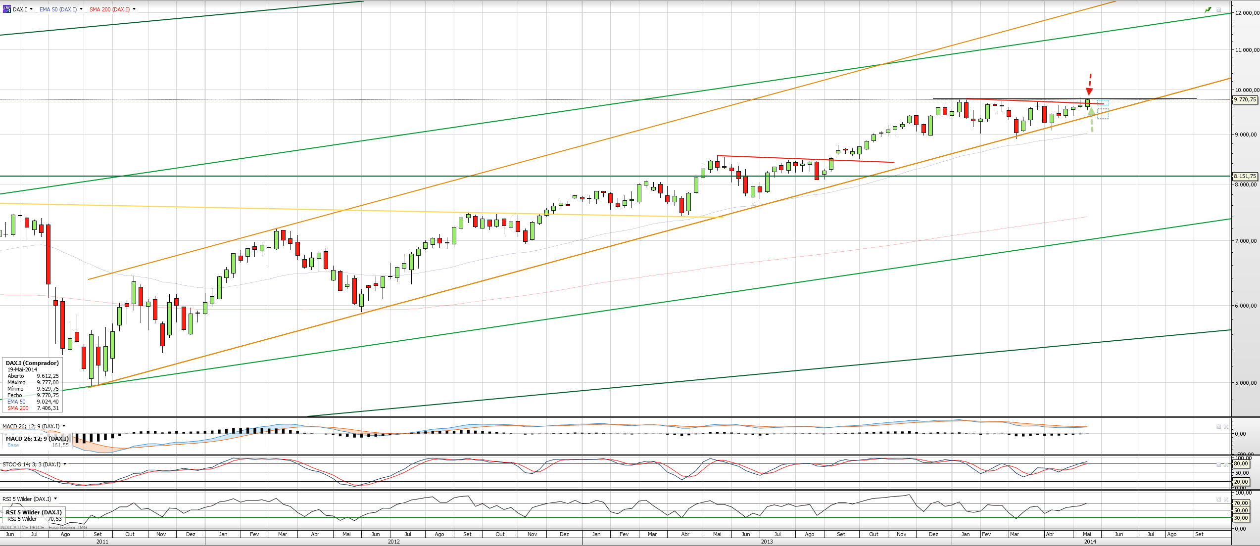 Em relação aos mercados: as análises que vejo ao SP500 (não é fácil encontrar do DAX, se alguém souber onde, em inglês
