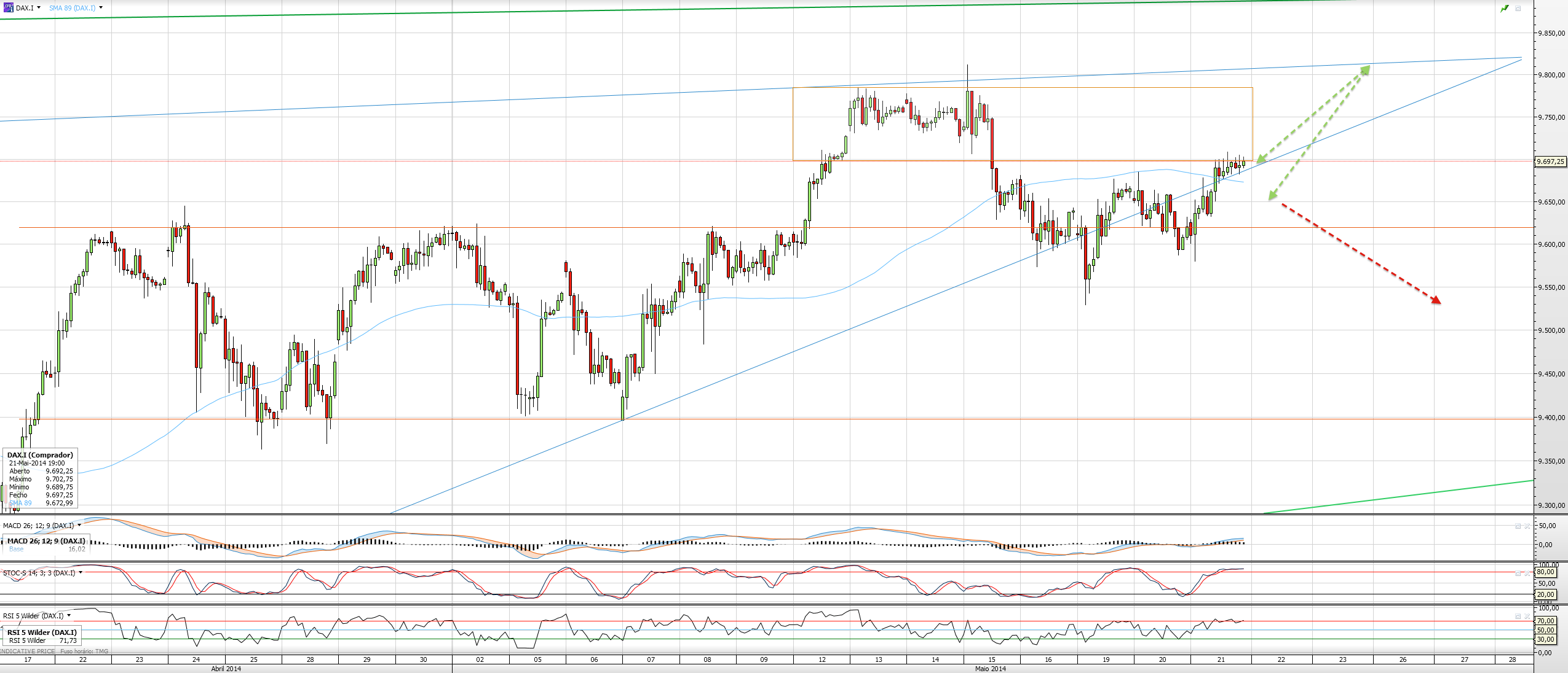 Só fecharei se ele (o DAX) me convencer do contrário; e para isso tem que furar alegremente e cheio de força a barreira dos 9820/9850. Não é muito o meu