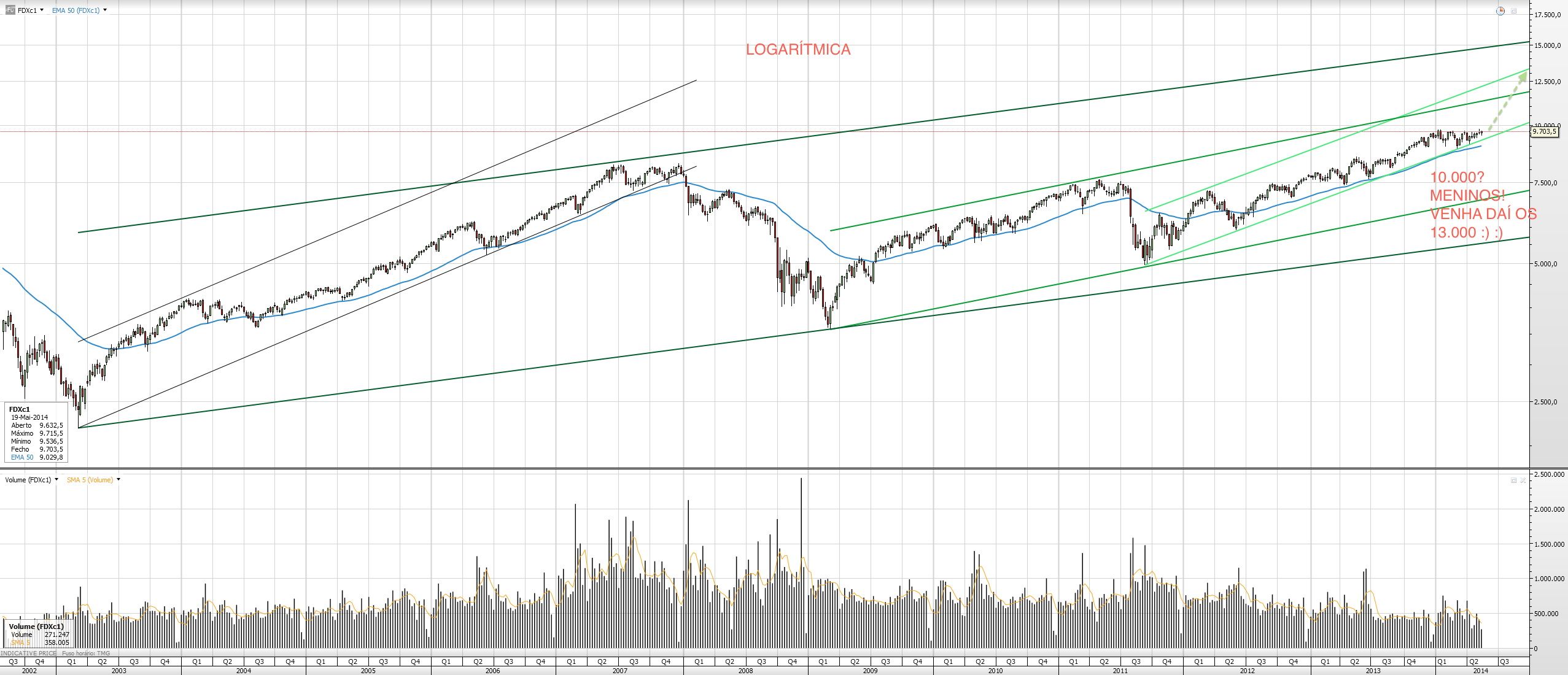 Não tenho resposta para o numérico versus o logaritmico, não faço ideia qual é que se deveria usar nem porquê. O DAX vai continuar a andar ás cavalitas do SPX e nesse os volumes tem vindo a diminuir.