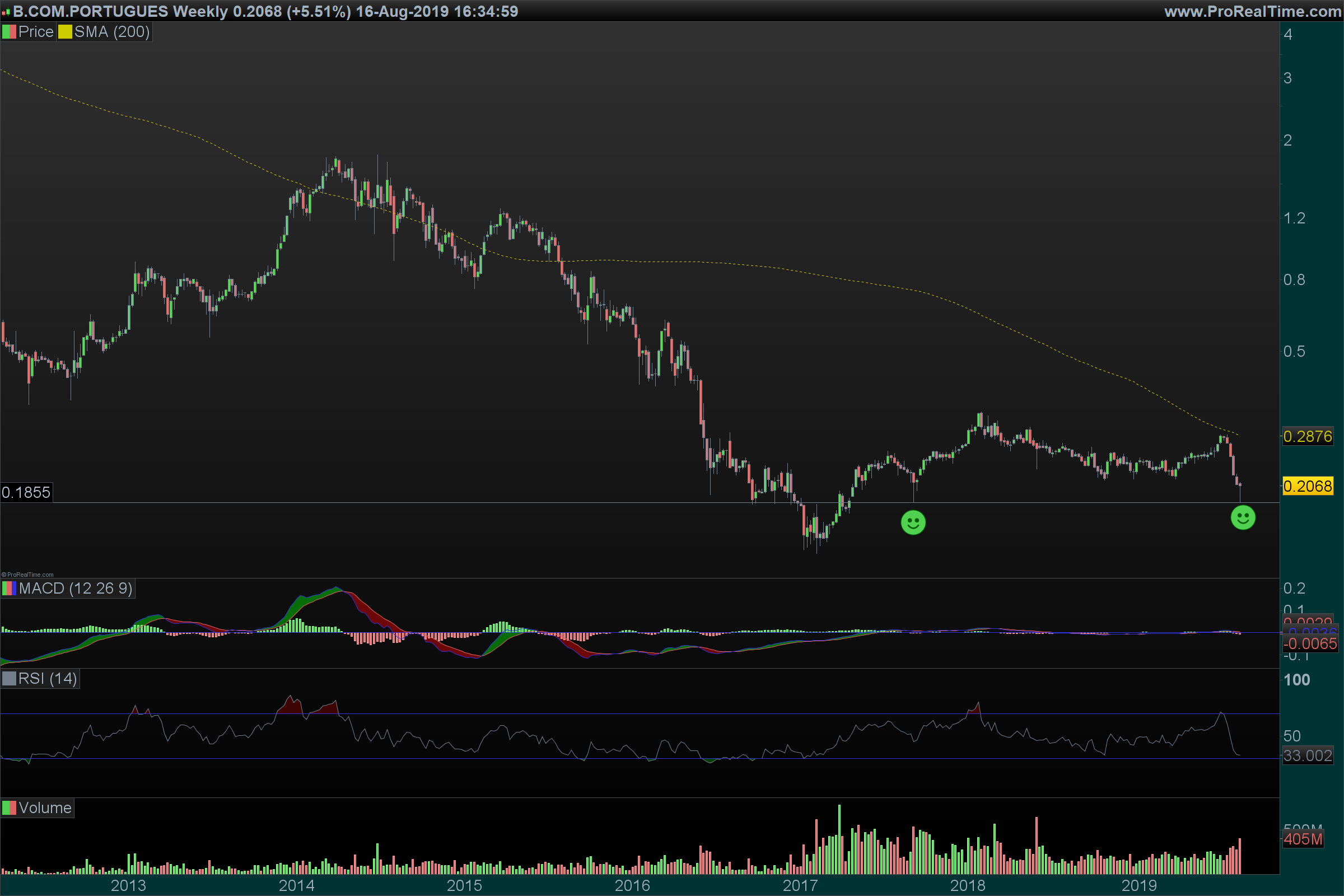 Suporte no BCP é nos 0,18 vamos lá ver se recupera algum valor, mas dificilmente será um início de bull market.