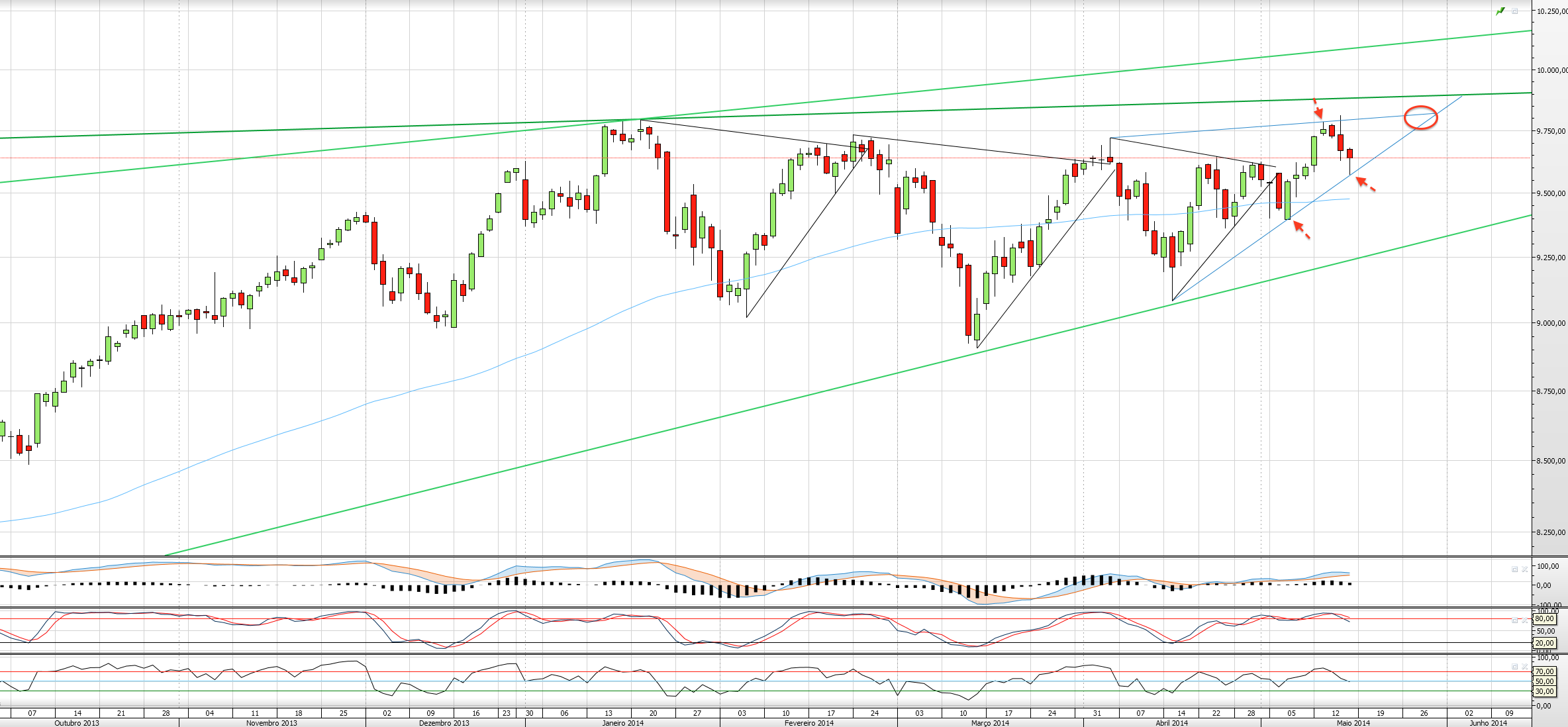- Neste momento, estamos num range que lhe chamo "limbo", não sei para onde iremos, mas as hipóteses são quebrar a Lta e reentrar no range dos 9620-9400, onde o target óbvio é a base do range, ou realizamos um novo assalto aos 9695 para irmos de encontro ao máximo do ano