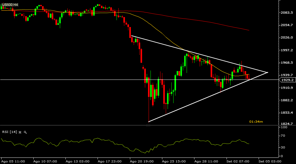 aquilo que se verifica é isso mesmo triângulos nos time frames de 4h em todos os indices dos states. pra que lado quebra? essa é que é a questão. Há uma regra que eu costumo analisar mas nos diários que tem a ver com a amplitude do triângulo. se ele tiver mais que 33% do movimento que o antecedeu por regra não é de continuação, caso contrário é. na situação atual pode dizer-se que em teoria tem fortes probabilidades de quebrar pra cima, mas gráficos de 4h em dias de dados de desemprego