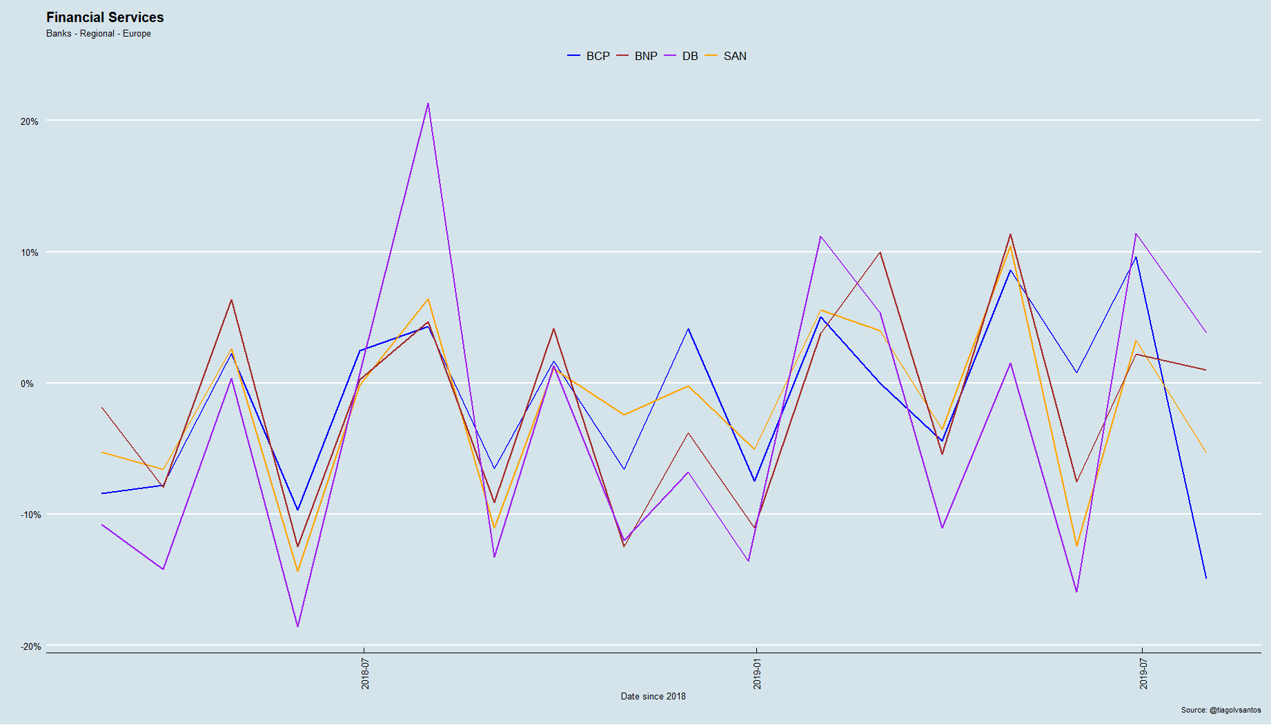 A divulgação dos resultados apresentada com alguma fraqueza e dúvidas sobre a quantidade de crédito mal parado da banca portuguesa + políticas económicas da zona euro, não dá boas perspectivas para os bancos europeus.