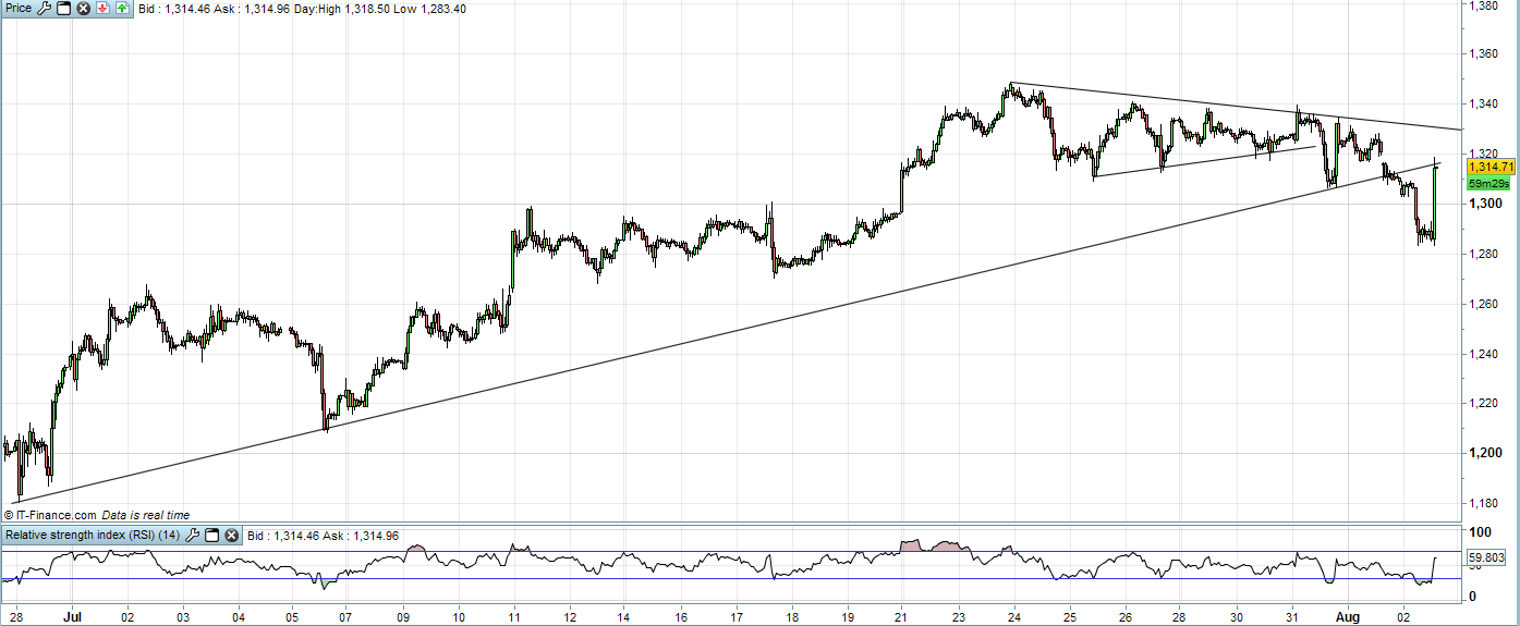 Bem, longo no ouro é quase como comprar banif, com a diferença que tu sabes perfeitamente o risco que estás a correr e venderás calmamente a perder dinheiro se for caso disso, porque és um bom trader, em vez de manteres com a Força de Acreditar todos os lingotes até ao fim dos teus dias, jurando que mesmo o preço estando a 500USD, tu sabes que valem muito mais