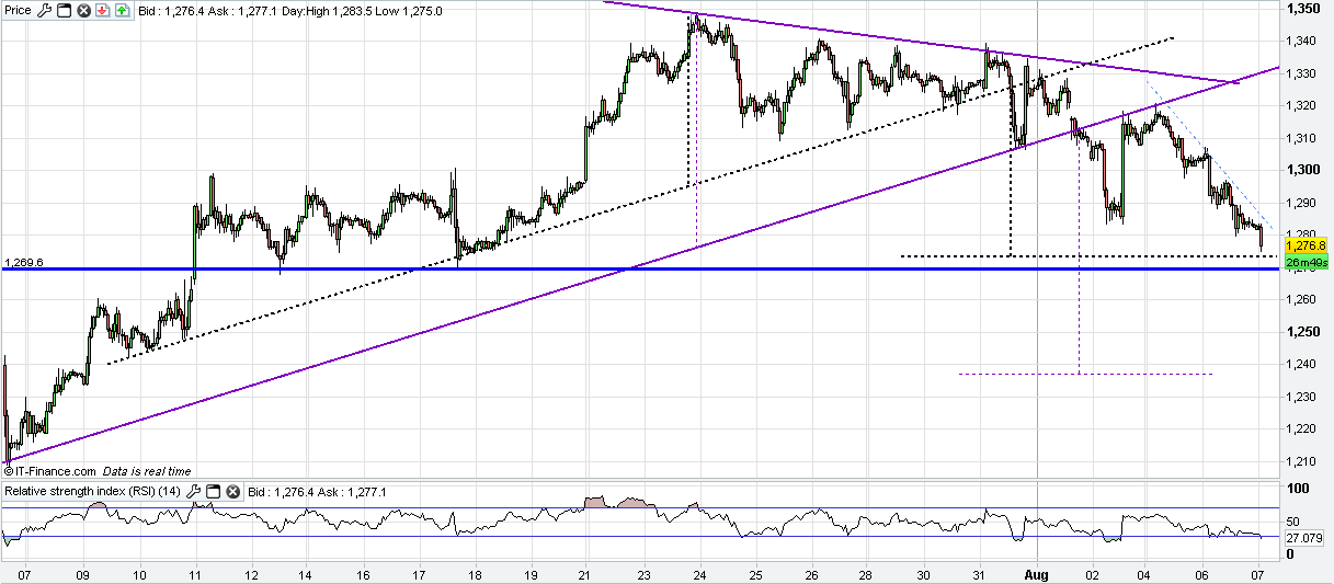 Quebra para baixo, target 1270´s.