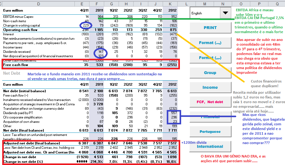 ebitda custos financeiros receitas por utilizador a sofrer dividendos altos tivemos de tudo como virá no post seguinte.... mais uma empresa arruinada por salgado..... nem o corte de divindos lhe valeu talvez se tem optado por um scrip nao tinha tido bem o mesmo fim mas o mau investimento na oi esse tava feito...
