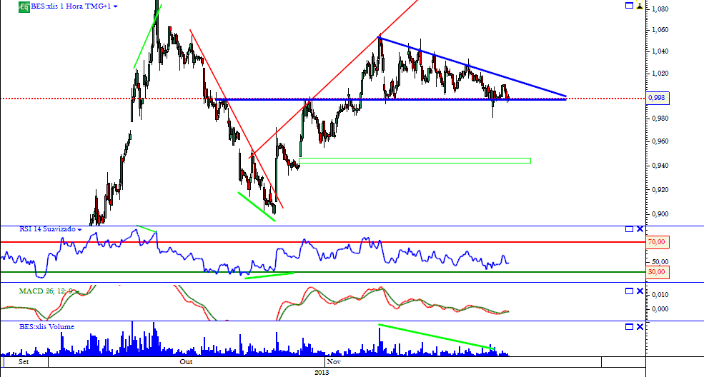 Quase nem é preciso gráfico para se ter noção de que o BES está a negociar num espaço cada vez mais pequeno. Ou vai ou racha