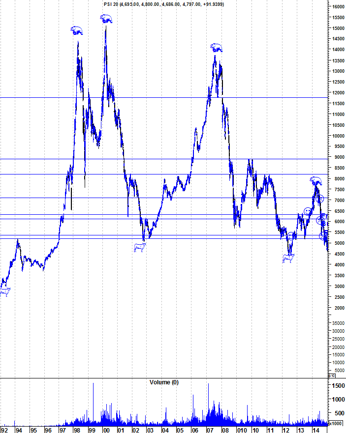 * 5300: mais ou menos, zona de anterior low marcante, no caso BES, e gaps em 2013, no caso Portas. fica ainda na imediação da projecção deste duplo fundo.
