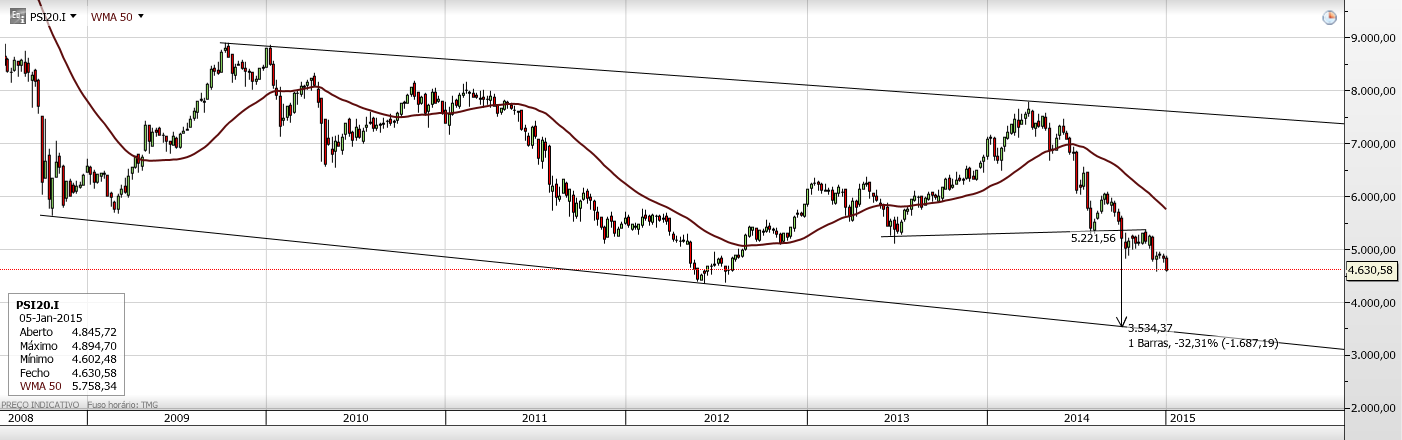 Actualmente ou o PSI20 vem aos 4500 e sobe logo, ou vem aos 4500 e lateraliza por meses, ou passa em baixa os 4500 e depois recupera em rally, ou sobe já definitivamente.