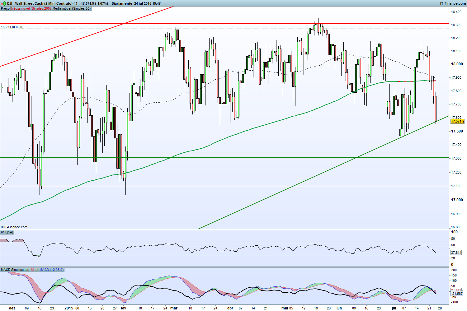 O problema dessa teoria, desse IHS, é o dow. Está muito mais fraco, tanto na última subida como nesta descida. Está quase em mínimos destas 2 últimas semanas.