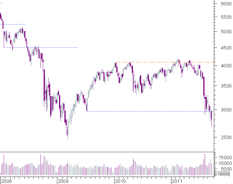 Se a subida na próxima semana continuar até aos 3300, desenha-se uma bela cabeça-e-ombros invertida com projecção nos 3900. Um cenário bullíssimo.