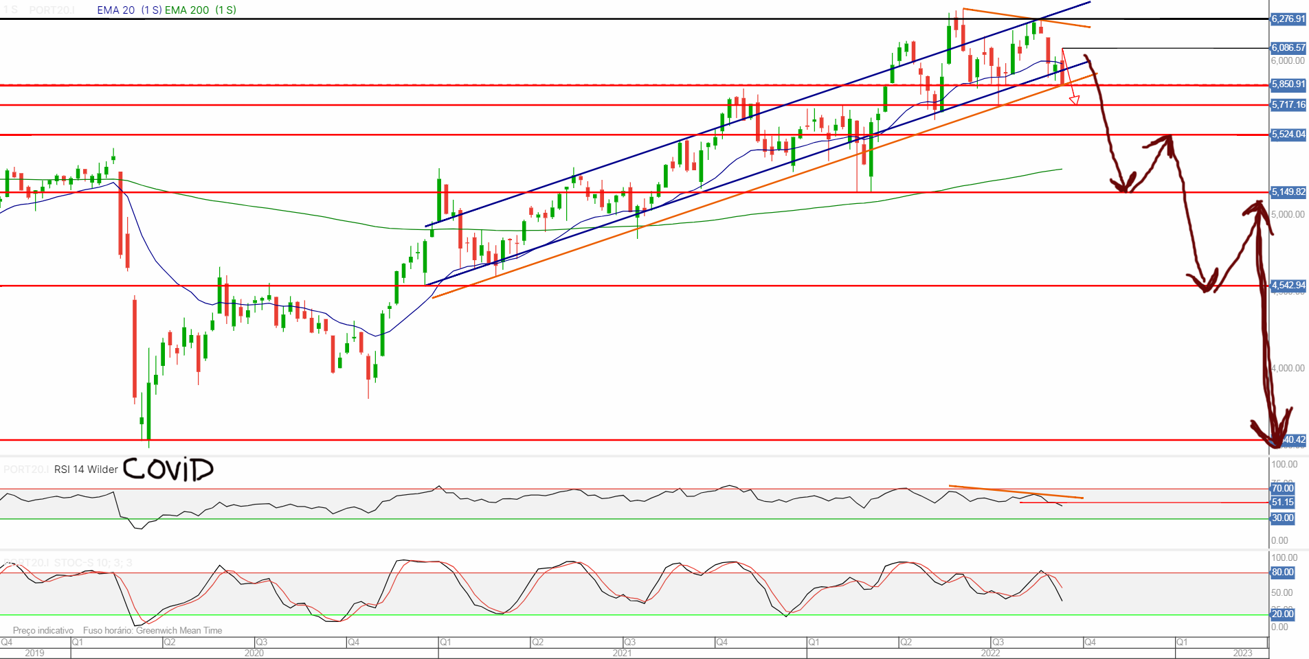 O PSI falhou em reagir ao suporte parece que tem o destino traçado de entrar em Bear Market. Tem um figura HS que deve ajudar ainda mais a consolidar esta hipótese.