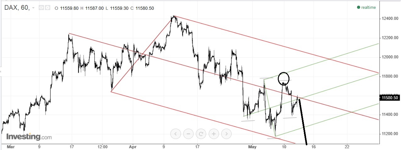 o DAX está neste momento em zona adequada para entrada curta - ML da Fork vermelha após Hagopian na Fork verde com target na LMLH da vermelha (podendo haver um target intermédio menos ambicioso na última zona de mínimos pelos 11400).