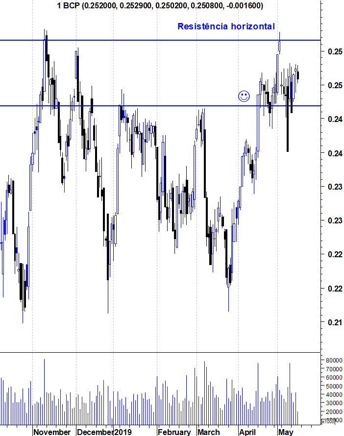 O BCP tem aguentado bem este período de turbulência dos mercados. Deu o primeiro sinal com a quebra da resistência dos 0,247 e naturalmente que lhe falta o grande sinal que será a quebra da resistência dos 0,257.
