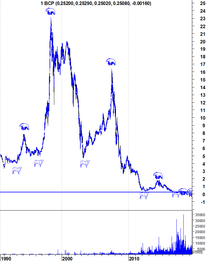 Parece quase uma fatalidade: mal a cotação do BCP passa 0,25 euro logo regressa a ideia da cotação atingir 0,30 euro, 0,40 euro, etc..