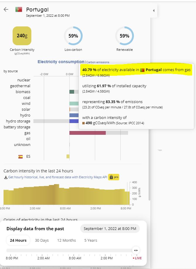 Txiii, provavelmente o gás é uma energia renovável nos conceitos verdes. Nos meses secos Portugal é completamente depende do gás e só no inverno com a hídrica é que consegue reduzir um pouco esse problema. Por sorte os invernos não são muito rigorosos...