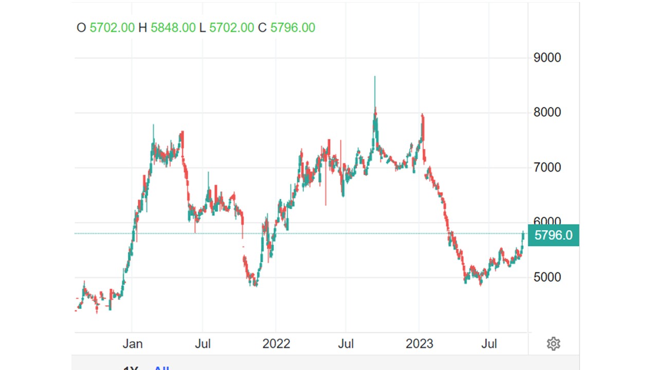 Exatamente há 1 ano atrás, iniciou um movimento de subida que durou 15 dias e 50centimos.