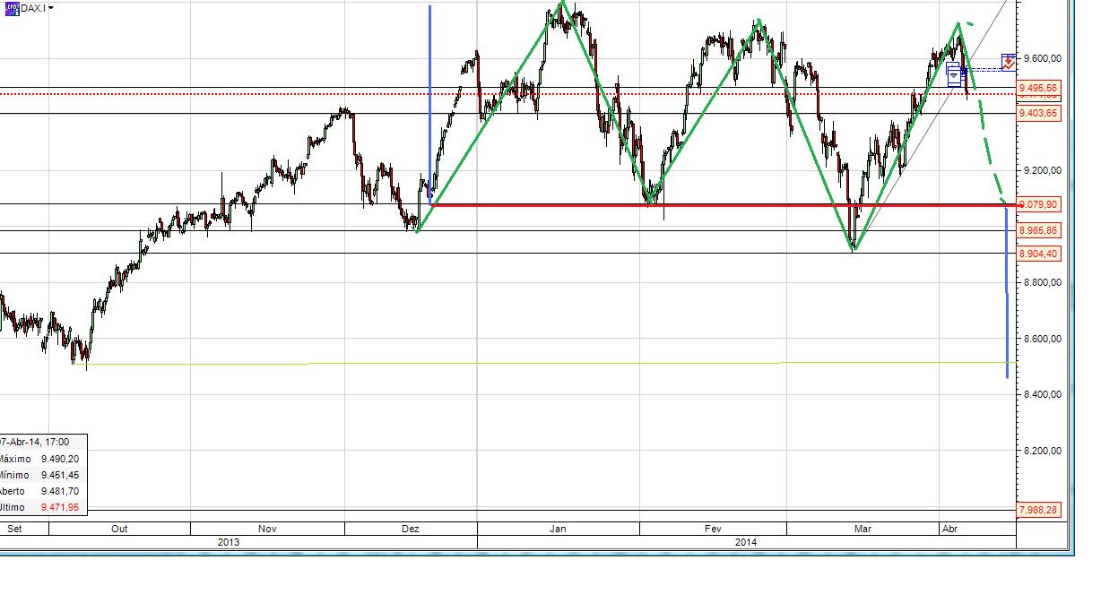 Quanto ao rebound ... o S&P tambem está a quebrar o importante Suporte dos 1,850 , o Nasdaq está em queda livre , o Dow vái pelo mesmo caminho, por isso, com a quebra da LTA de curto prazo do DAX...não sêi não . Está com muito mau aspecto. Por este andar, eu metia o DAX nos 9,400 - 9,420 ainda hoje , onde tem um suporte ...zito.