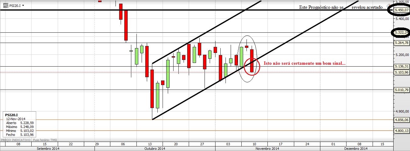 Hoje a vela não foi nada bonita, o Preço saiu para fora do tal pequeno canal que se estava a desenhar. Considero o Prognóstico que tinha apontado como inválido. Pode chegar lá na mesma, como tudo é possível, mas não pelos pressupostos que tinha pensado/apontado...