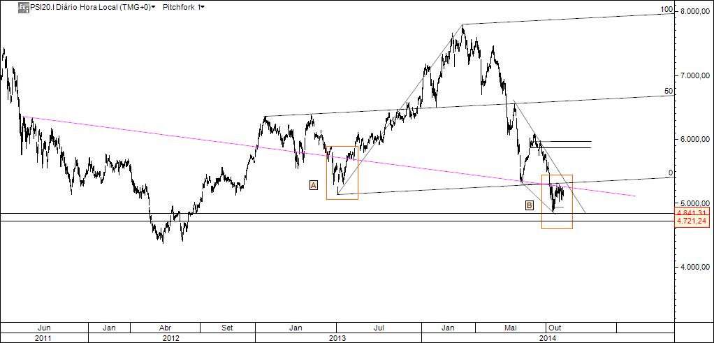 Deixo um gráfico diário do psi20. Fácil ver qual o nível a que se tenta agarrar e que lhe poderá servir de trampolim (A = B?)