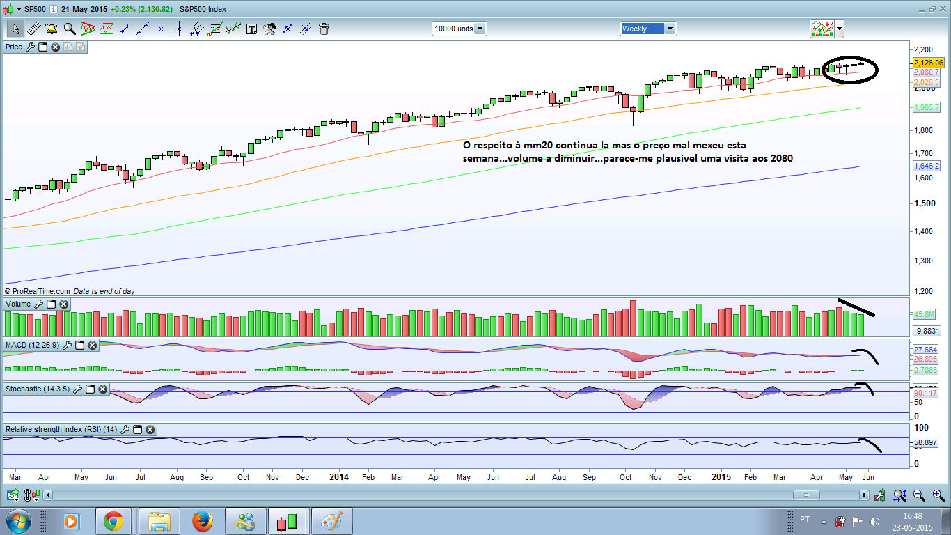 Muito pouca força esta semana no SP500...acabando a earnings season...e a volatilidade no EUR/USD e no petrol a terminar ou diminuir pode levar isto para outra direccao.