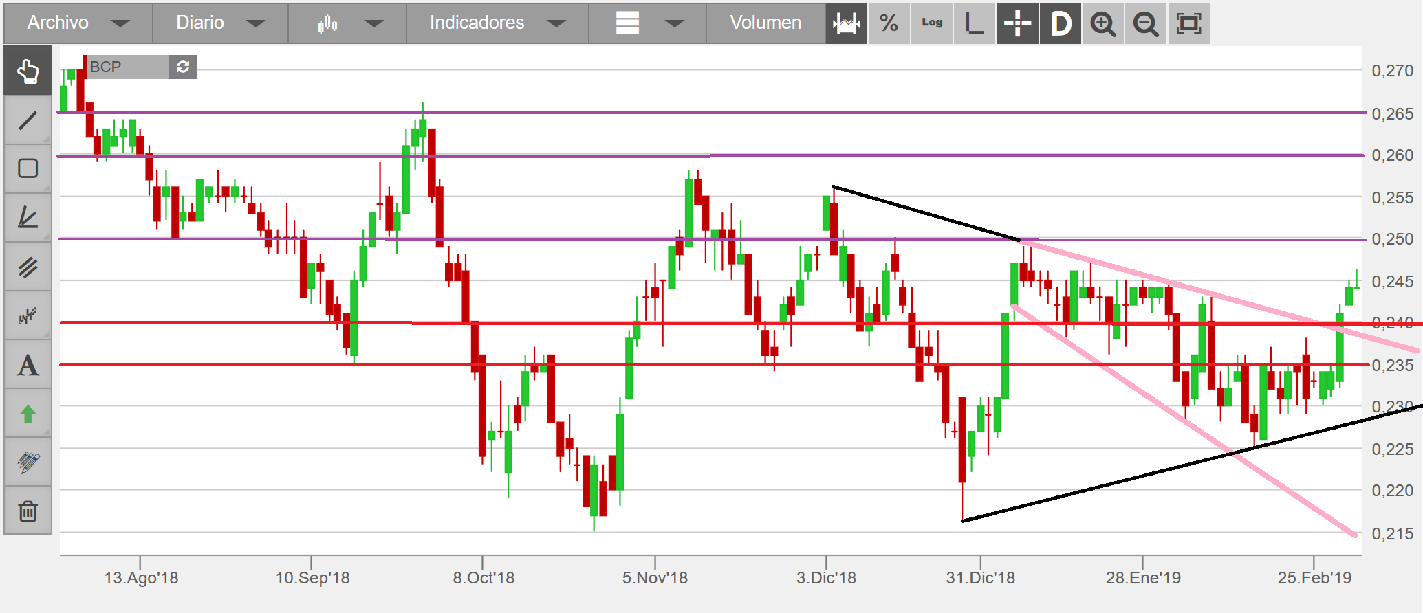 Olá a todos do BCP, a cunha descendente já chegou bem perto do valor alvo da mesma, ali nos 0,25