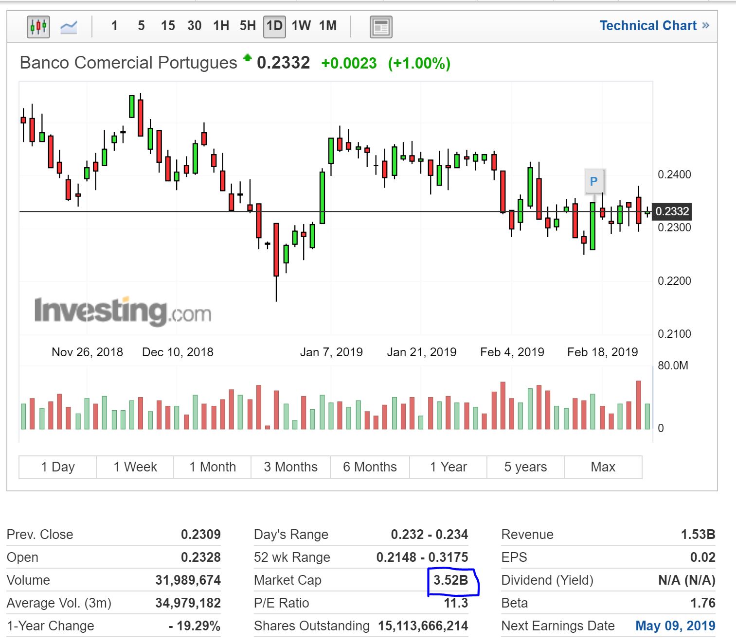 Para a cotação próxima interessa mais o que acontece ao eurostoxx600 e o estado dos bancos alemães e italianos que os 300 ou 400 milhões de resultados de 2018 que apresentou ou que poderia ter apresentado.