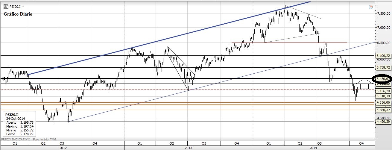 Eu também não faço futurologia e nos mercados é um exercício suicida a menos que o façamos para descomprimir. Nesse prisma diria caso o índice regresse às subidas que a meu ver será espectável passado o cabo das tormentas (BES, Testes de Stress, Ucrânia, etc ) e com o BCE e economias a darem uma ajudar) diria que o ataque à zona dos 6000/6100 se fará de uma só vez, à imagem do movimento de descida.