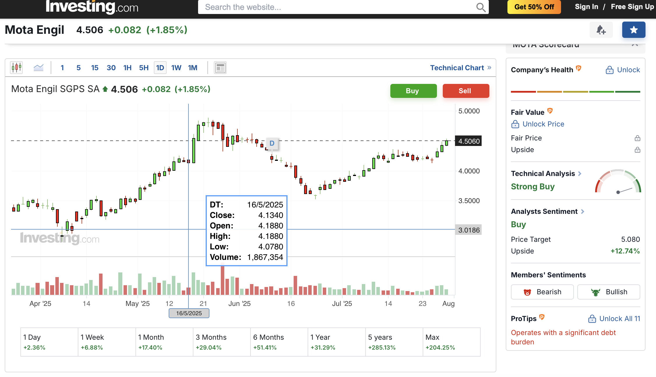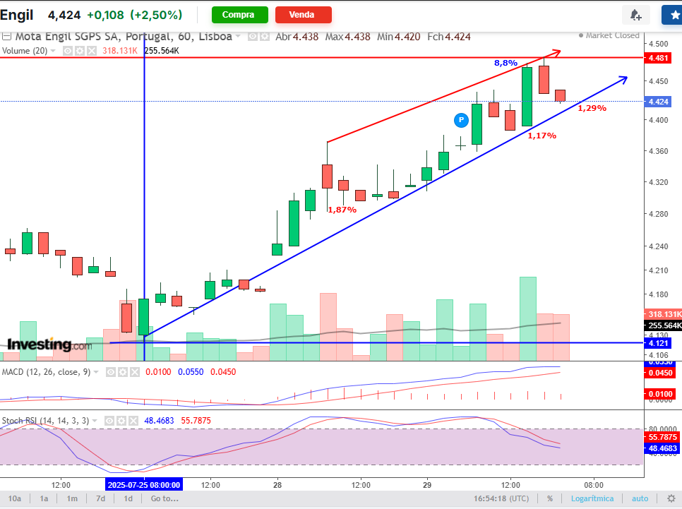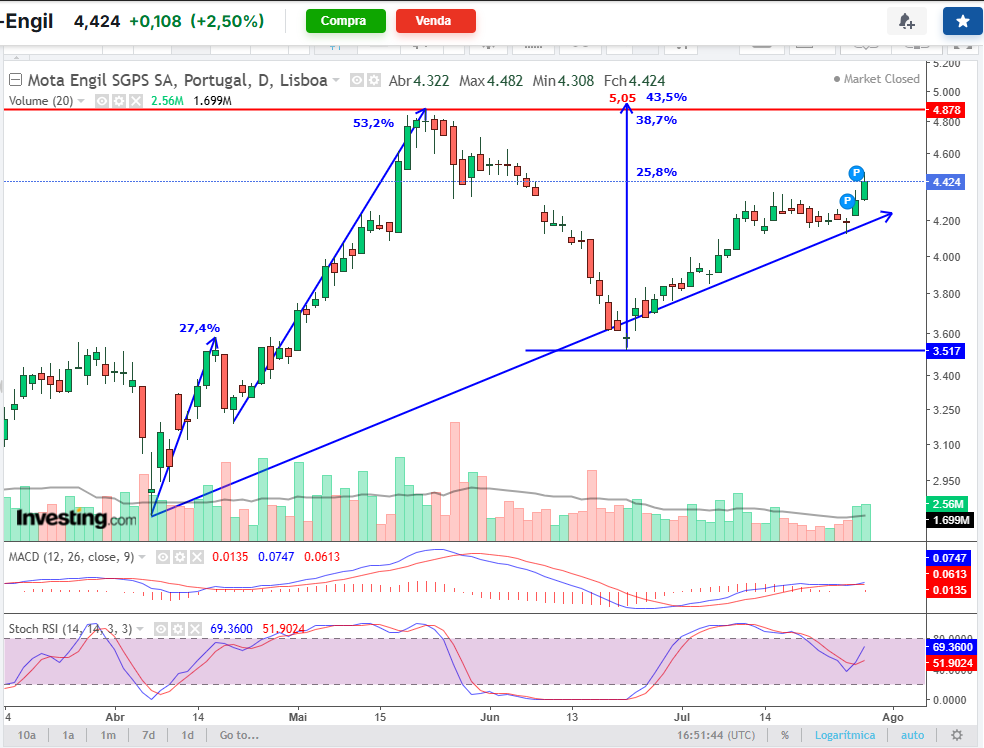Eu aposto numa subida até os 4,90 / 5,00, é aí que tenciono vender…