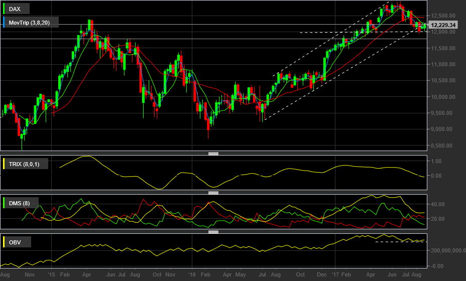 DAX está em tendência descendente e num canal descendente bem vincado no gráfico.