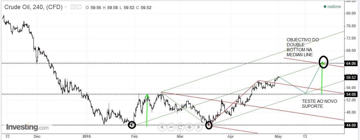 entretanto, apeteceu-me olhar um pouco mais para o gráfico do crude e antecipar um movimento tendo por base os pressupostos apresentados na imagem em anexo, exercício que serve, à semelhança dos outros, para comparar cenários hipotéticos com a realidade, e dessa forma, tentar afinar a antecipação. a melhor forma de o fazer é postá-los de modo a que fiquem registados para posterior comparação.