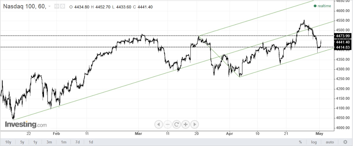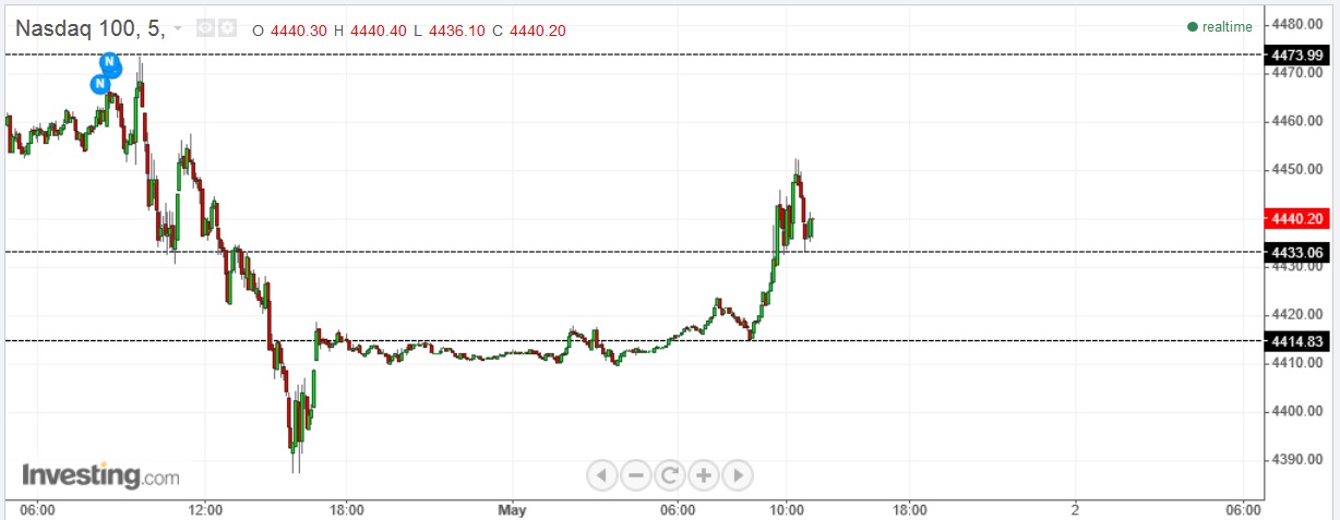 pegando na lupa e olhando para o gráfico de 5 min, e vendo o que aí se passou, a linha dos 4430 poderia também servir de referência para uma stop loss - arriscaria esta linha.