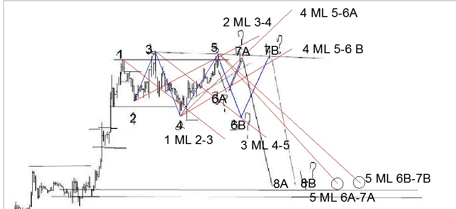 o facto do pivot 5 estar abaixo da 2ML 3-4 e do pivot 7A (que projectaste) estar abaixo da 4ML 5-6 sugere-te fraqueza do preço, pq caso este fosse para cima, os 2pivots, em princípio, estariam acima das referidas linhas. é por aqui o raciocínio ou não foste por aí?