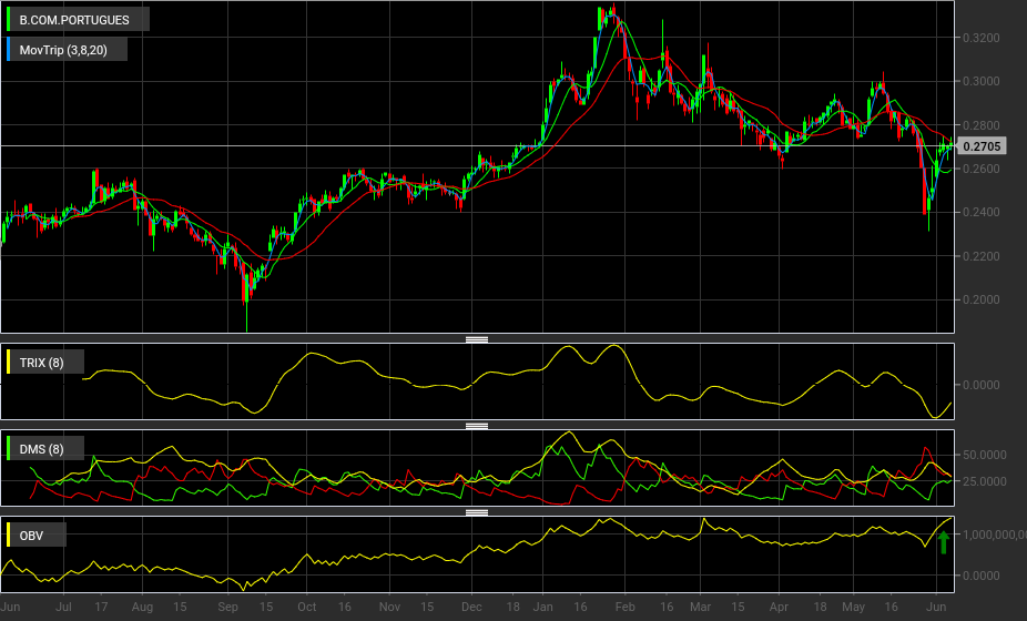 Para quem quer entrar na acção, deve esperar por uma ruptura desta linha, de forma a poder entrar com maior segurança. Devo, no entanto, salientar, que mesmo que essa linha seja quebrada, isso não sinaliza uma inversão definitiva da tendência da acção. Essa só acontecerá com a ruptura da linha de tendência descendente de longo prazo. Mas até lá ainda há muitos obstáculos pela frente...