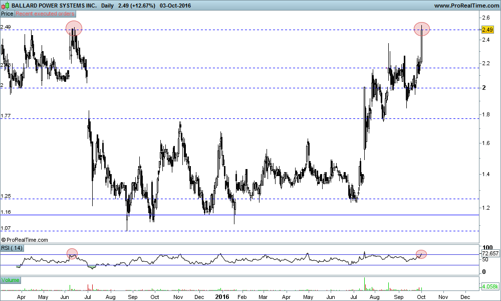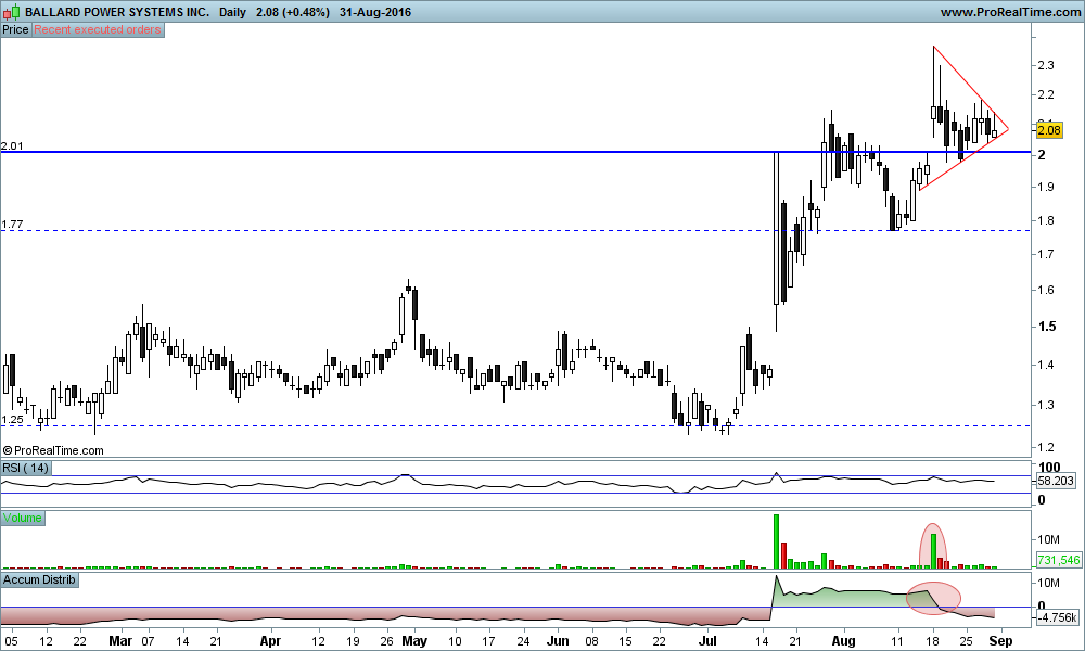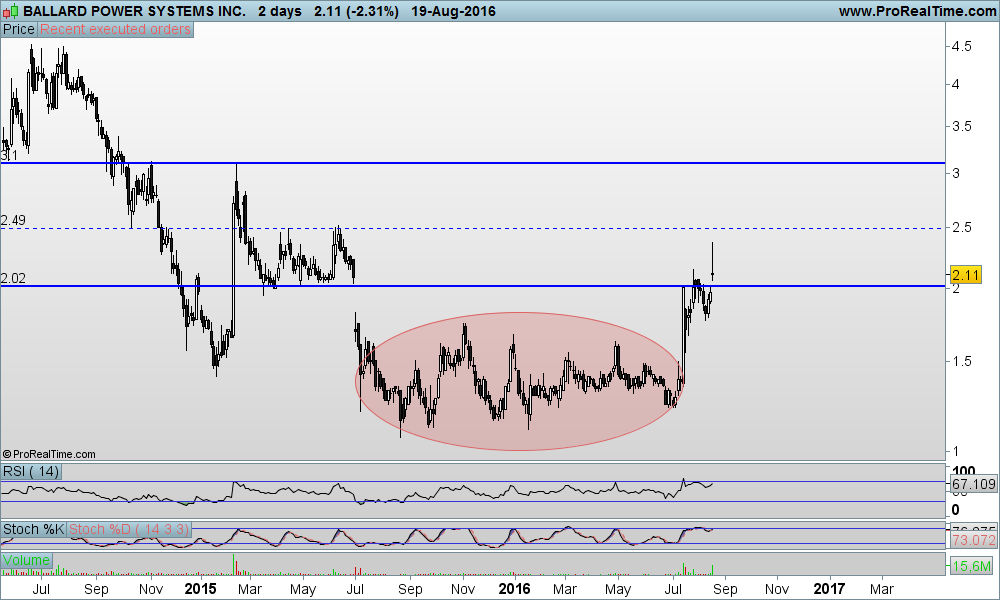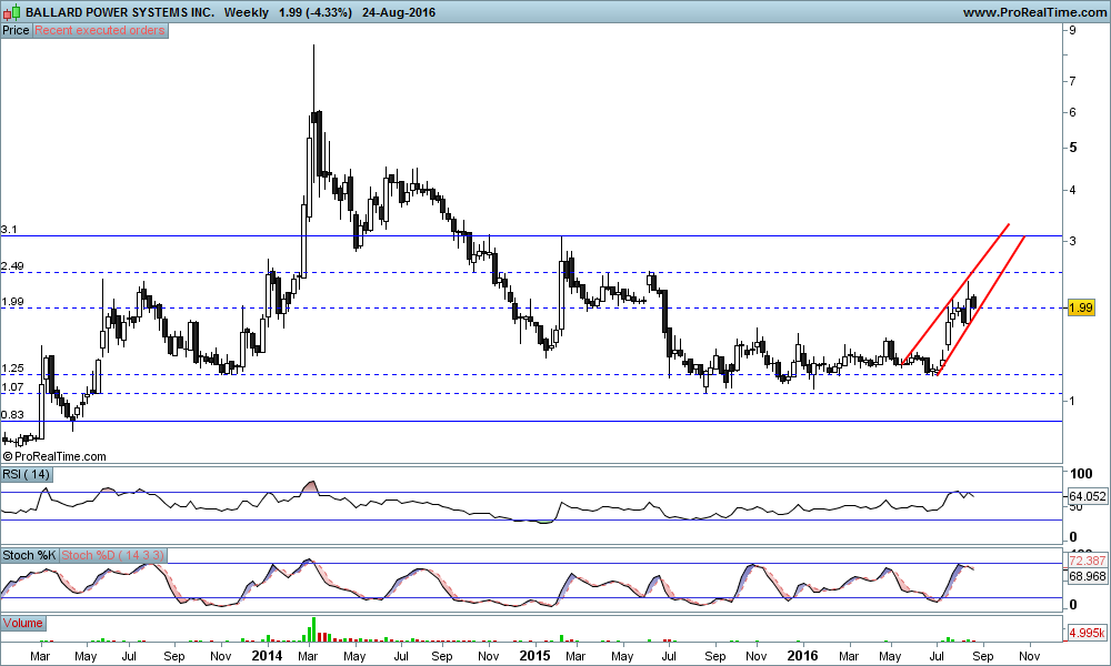 A Ballard tem dados sucessivos sinais de força nos últimos tempos, está a corrigir das recentes subidas e uma aproximação ao suporte dos 2,45/50$ pode justificar uma entrada/reforço.