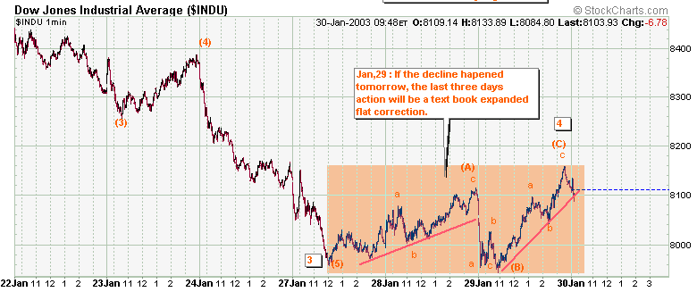 O Dow não teve força sequer para se aproximar da retração permitida (8400). Mas nem por isso deixou de desenhar uma recuperação em "a-b-c" todo à maneira, digno de um compêndio!!