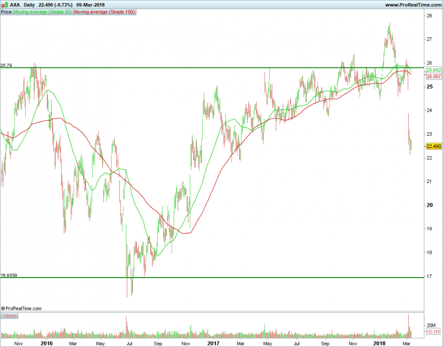A seguradora AXA abriu o ano em gap, tendo desde ai entrado em modo de correcção.