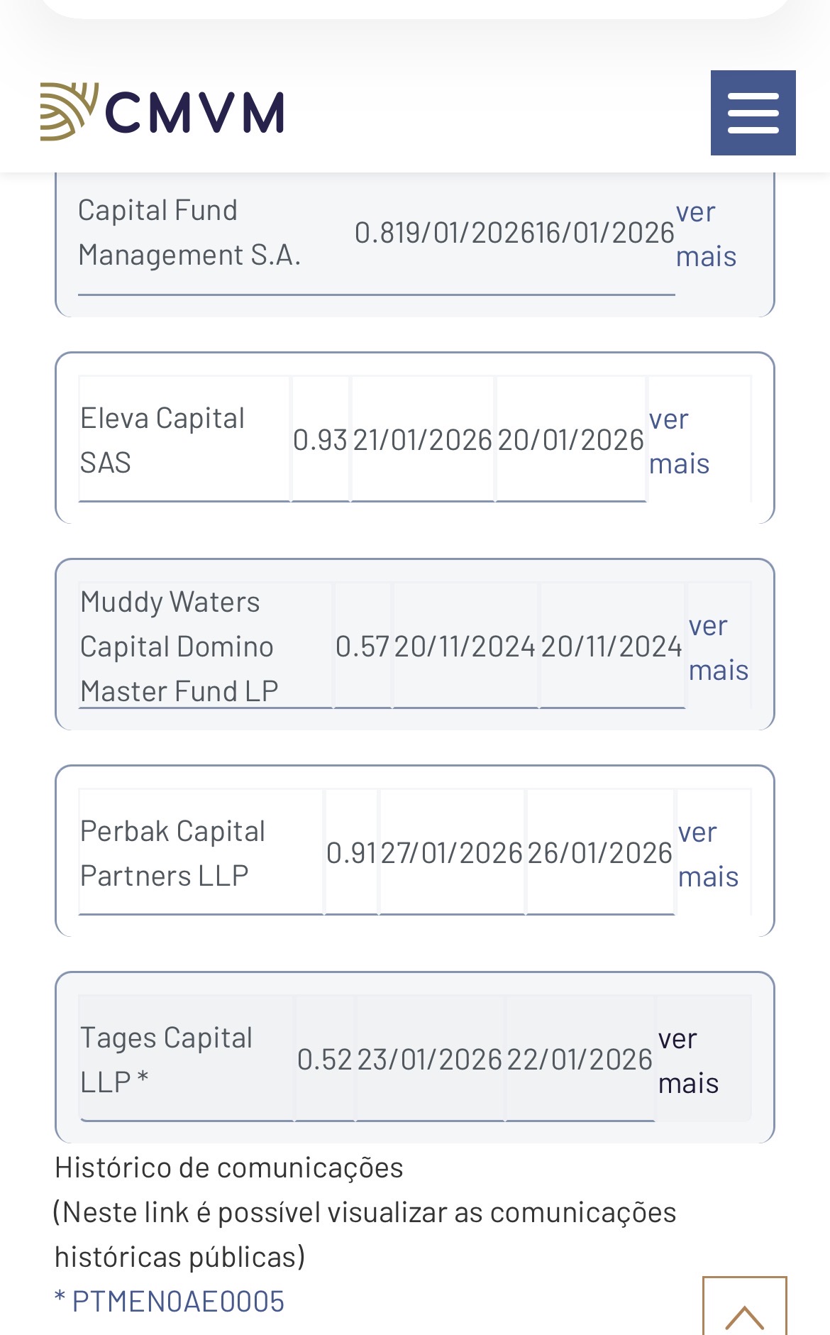 Já li o artigo no site da Brevarthan e não refere qualquer ação judicial contra a Mota-Engil. O texto é altamente vago em termos técnicos, de interessante não tem nada. Note Susana que, se a Muddy Waters tivesse uma linha de argumentação clara para justificar o short, teria publicado um relatório técnico a justificar o mesmo. A Muddy é um fundo autodenominado 'ativista' que abre shorts quando acha que as empresas estão com algum tipo de problema financeiro ou a manipular contas e acompanha (quase) SEMPRE com um relatório público no seu site. O facto de não ter publicado nenhum relatório sobre a Mota só demonstra que não têm argumentos técnicos e factuais para fundamentar anomalias financeiras sobre a Mota Engil.