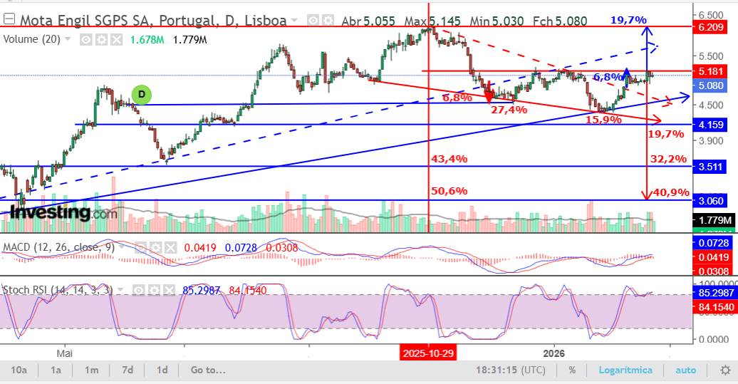 No caso da Mota-Engil, a subida do petróleo pode ter efeitos mistos , por um lado, beneficia mercados exportadores de petróleo onde a empresa opera, por outro, pode aumentar custos e travar economias. No fundo, o impacto tende a ser equilibrado entre vantagens e inconvenientes.