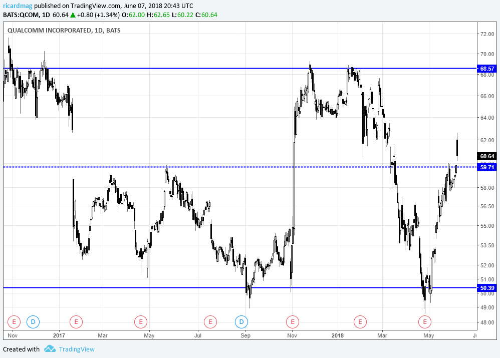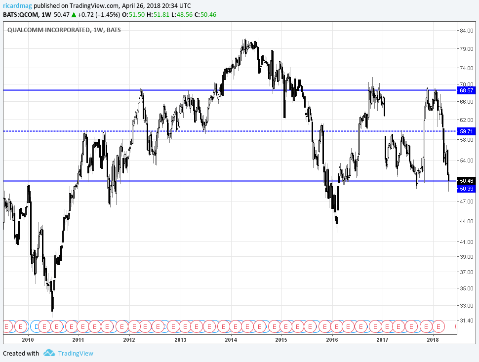 Há pouco tempo a QCOM rejeitou uma OPA com um valor por ação na casa dos 80 dolares.
